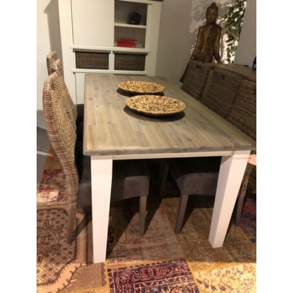 De eettafel is 180x90cm. Het programma Malton is gemaakt van MDF in de kleur white met een Wagon grey top van massief acacia. Mooie landelijke tafel van zeer goede kwaliteit voor een aantrekkelijke prijs.